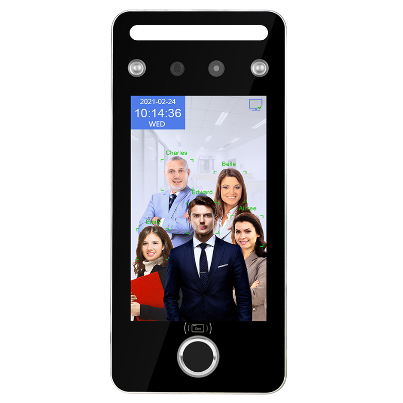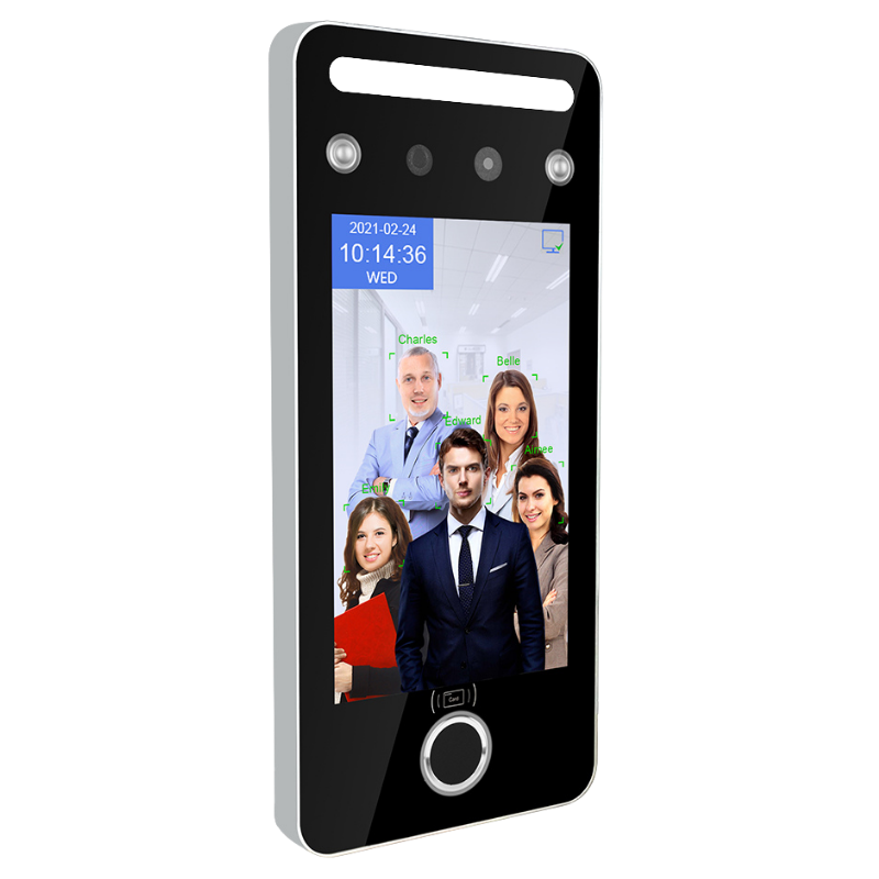 Reloj marcador con reconocimiento facial dinámico para control de acceso en zonas restringidas, ideal para empresas con alto volumen de tránsito.